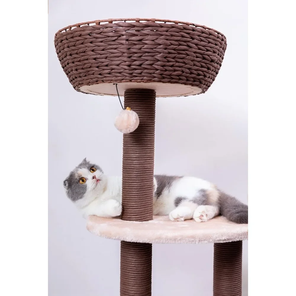 - FEATURES: Teasing toy, weaved bowls, paper rope posts and plush covers